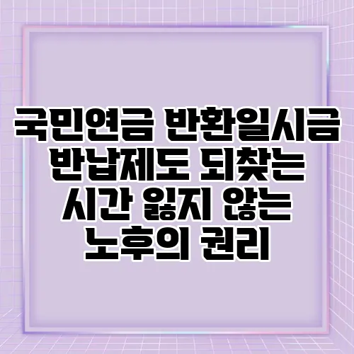 국민연금 반환일시금 반납제도 되찾는 시간 잃지 않는 노후의 권리