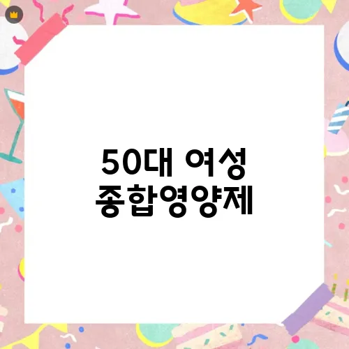 50대 여성의 경우, 다양한 영양소를 따로따로 섭취하기가 쉽지 않을 수 있습니다. 그렇다면 종합영양제를 섭취하는 것이 효율적인 방법이 될 수 있습니다. 종합영양제를 통해 여러 영양소를 한 번에 섭취함으로써 필요한 영양을 쉽게 보충할 수 있습니다.